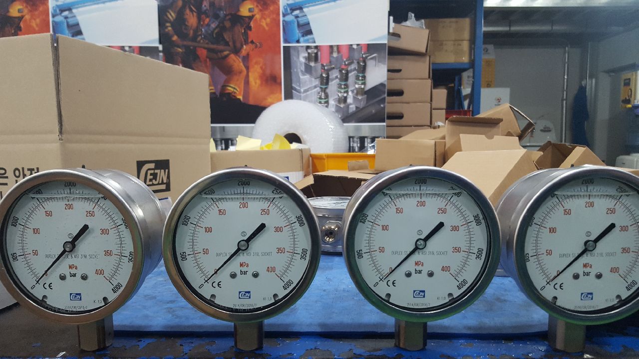 압력게이지 CEJN 세인 초고압 압력게이지 63파이 ~ 1000BAR 부터 100파이 4000BAR 까지 압력별 다양한 게이지를 취급하고 있습니다.