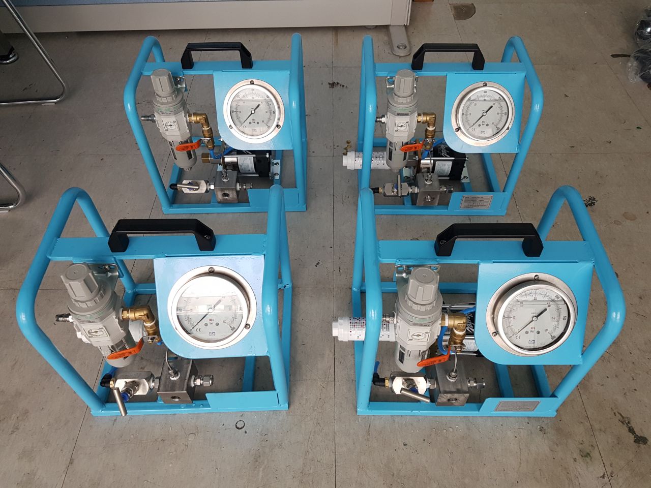 에어구동방식이라 전기가 필요없고, 구성이 및 사용방법이 매우 간단합니다. 각종 수압테스트시 필요 아이템!!