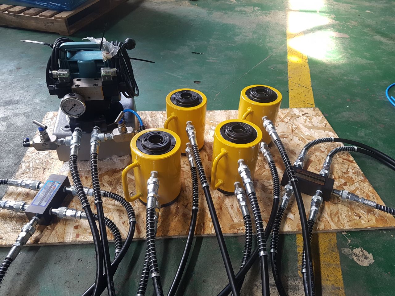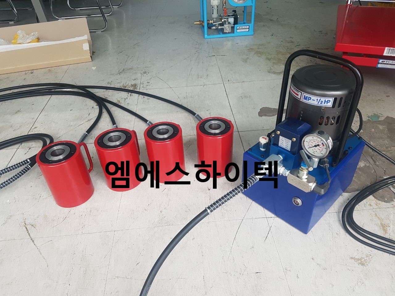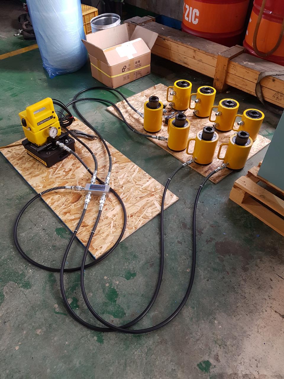 센터홀 실린더 스틸 30TON X 60ST (41파이) 제작 사양 전동펌프 1/2HP + 드레인 밸브 부착
